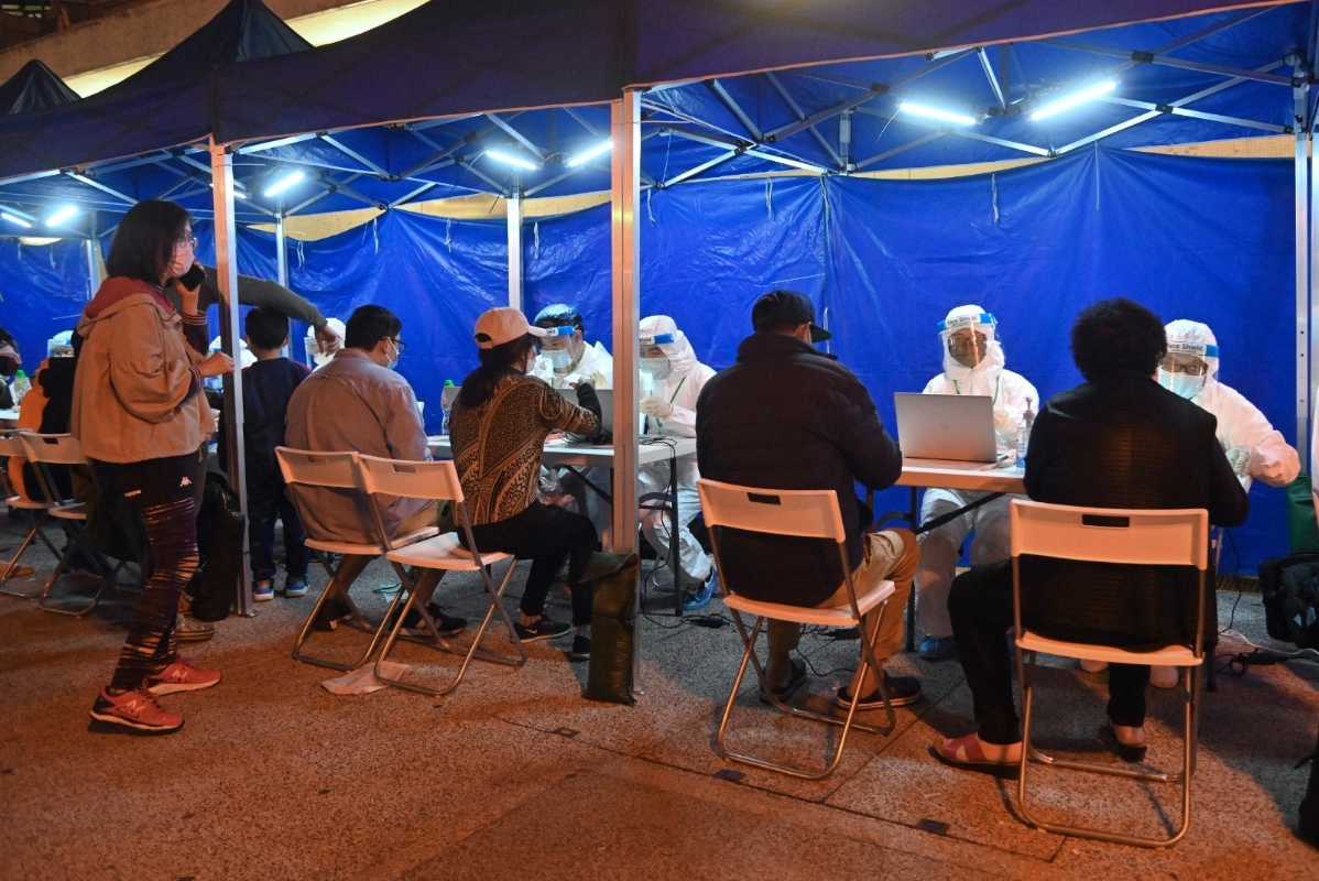 工作人員在“受限區域”內為受檢人士登記進行檢測。(政府新聞處) 此外,葵涌邨夏葵樓約525名居民接受檢測,發現5宗初步陽性檢測個案。深水埗北河街慶豐大廈約80名居民接受檢測,沒有發現陽性檢測個案。 特區政府亦在受限區域內派員到訪約685戶,當中約30戶在過程中沒人應門,政府會採取措施跟進。 【編輯:张琦】