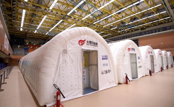 香港特區政府早前公佈,已獲廣東省政府協助,邀請專家來港,協助在馬鞍山體育館重設“火眼實驗室”,令香港每日核酸檢測量增至30萬。 氣膜實驗室是目前國內最大規模的移動實驗室,將依託檢測人員與自動化設備,實現24小時不間斷運轉。香港2020年8月推行全民檢測時首次設立過氣膜實驗室。 實驗室需要三至四百人維持運作,一半將由廣東調派來港。有不少已從廣東抵港的醫護人員在內地社交平台實時分享工作進度。
