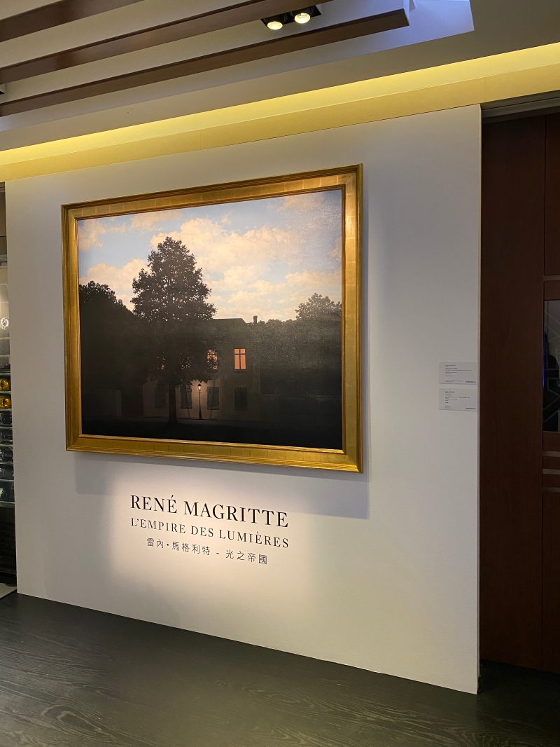 雷內·馬格利特作品《光之帝國》。香港新聞網 李子琦 攝 畢加索為愛人繪製的單色肖像畫《托腮女子半身像》和莫奈的《睡蓮》也在展出之列,估價分別在1500萬至2000萬英鎊及1000萬至1500萬英鎊之間。