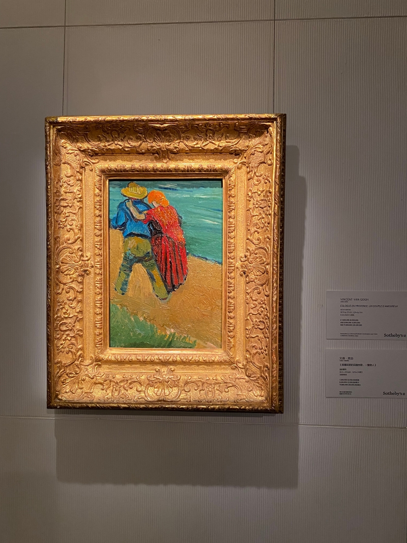 梵高作品《普羅旺斯的田園牧歌—一對戀人》。香港新聞網 李子琦 攝 同場亮相的還有梵高的作品《普羅旺斯的田園牧歌—一對戀人》,估值700萬至1000萬英鎊。作品描述了一對親密愛侶散步河畔,鮮明的色調展現出藝術家受南法光線特質影響,也同時反映出梵高對浮世繪的迷戀。(完) 【編輯:黎金良】