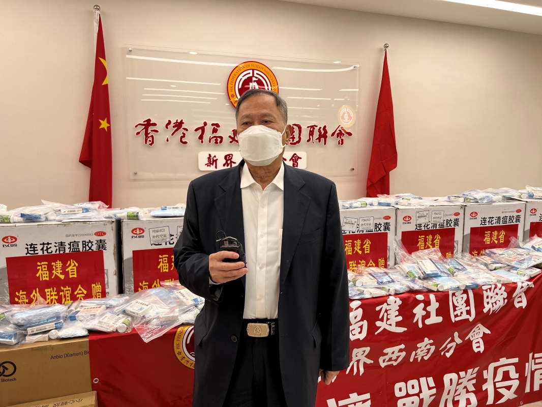 海南社團總會開展抗疫物資愛心大派送活動 各方籌集抗疫物資 涓涓細流彙聚成海、 面對來勢洶洶的新冠疫情,同鄉社團充分發揮聯繫廣泛的資源優勢,全面動員社會力量,迅速籌集各類抗疫物資,第一時間派發給會員及鄉親。廣東社團總會、福建社團聯會分別成立抗疫基金,籌集逾千萬港元的抗疫支援資金用於幫助染疫重症鄉親。為解決鄉親所急所需,廣東社團總會及各屬會緊急購買或募捐逾10萬盒快速檢測試劑盒、2萬份抗疫湯包。福建社團聯會第一時間購買5萬個快速檢測盒、10萬個口罩,以郵寄方式寄送鄉親。廣西社團總會通過各區服務中心派發抗疫福袋1萬份。海南社團總會第一時間採購並派發3萬套檢測試劑以及1000多套防護隔離衣。山東社團在社區派發2萬餘份檢測試劑套裝。江蘇社團總會會長唐英年個人捐贈1萬盒快速檢測試劑盒予會員鄉親。滬港經濟發展協會通過各種管道發放近8000份快速檢測盒和5萬個口罩。雲南旅港同鄉會迅速籌集2000多套檢測試劑、5萬個口罩派發給1000多位在港有需要鄉親。
