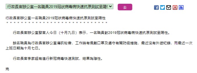 香港新聞網3月2日電 香港創新及科技局今日(2日)表示,該局一名秘書新冠病毒快速測試呈陽性。