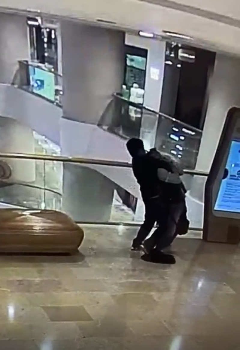 (CCTV片段) 警方正追緝一名身高約1.7米、中等身材、蓄短黑髮,案發時身穿黑色上衣及黑色長褲的男子歸案,案件列“傷人”,交港島總區重案組跟進。 CCTV片段拍得案發經過,事主當時坐在太古廣場3樓近玻璃圍欄的座椅,突然被一名身穿黑衣的男子從後箍頸。事主不斷掙扎但無果,未幾疑失去知覺昏迷,黑衣男仍不放手,緊箍事主約5秒。 黑衣男其後又將事主放在地上,不斷用腳狂踢狂踩,其間一度用手指向事主疑似講話,離開時更用腳踩向事主心口。 【編輯:刘春】