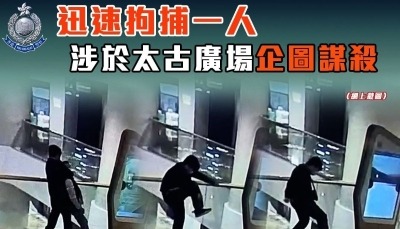 香港新聞網3月10日電 香港金鐘太古廣場昨晚(9日)發生恐怖傷人案,一名約70歲的老翁突然被一名身穿黑衣的男子從後箍頸,未幾疑似失去知覺昏迷,黑衣男繼續緊箍事主約5秒,其後又將事主放在地上,不斷用腳狂踢狂踩,事主其後由救護車送往瑪麗醫院搶救,情況危殆。