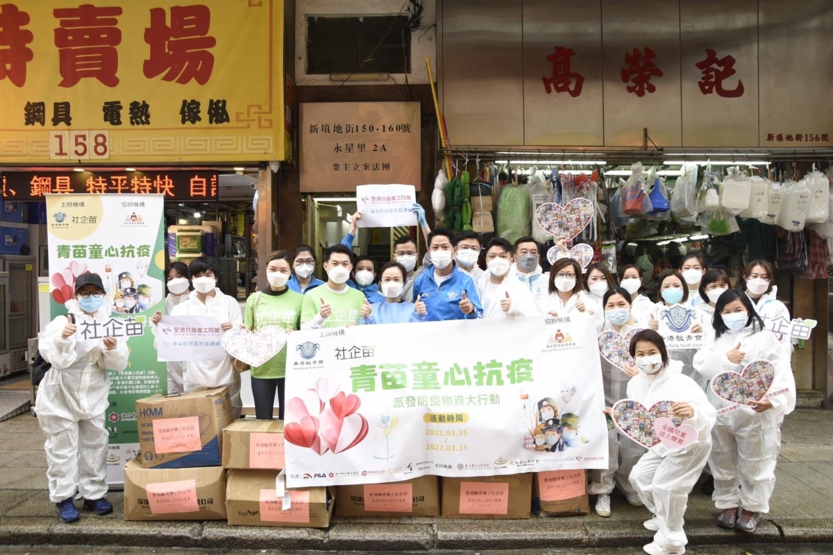 香港新聞網3月27日電 香港第五波疫情嚴峻,香港駿青會會長王子成及社企苗負責人潘智豪近日主辦“青苗童心抗疫”活動,邀請了立法會議員陳凱欣和梁文廣,油尖旺地區抗疫連線召集人楊子熙、顧問仇振輝、幹事關煒曦和何卓峰,以及二十多位青年義工上門探訪,一起將小朋友畫作製成的心意卡及一些抗疫物資送給劏房戶或基層的獨居長者。
