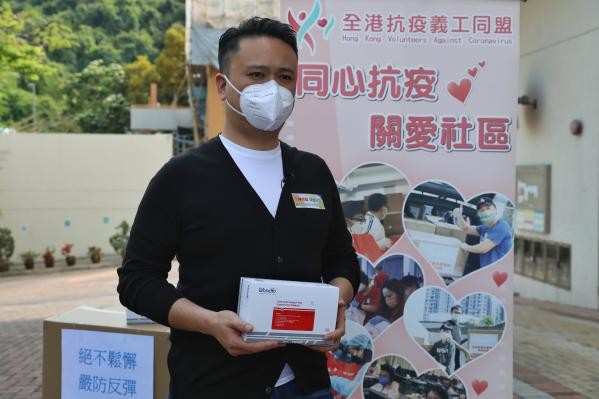 香港中通社圖片 當天午後,立法會議員陳學鋒、青年民建聯主席施永泰、民建聯中西區支部主席、青年民建聯秘書長劉天正到香港中西區聖彼得小學附近的行人路,為剛放學回家的學童派發檢測包及口罩。 劉天正表示,當日的行動為區內400學童派發檢測包及口罩。