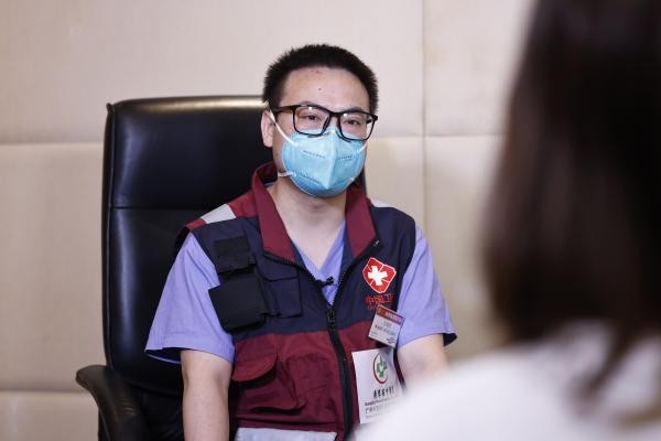 專訪廣東援港中醫師王維亮:要相信光香港中通社4月26日電 “新冠病毒就像怪獸,我們和怪獸作戰的時候,也會面對失敗的情況,但最終都是奧特曼勝利了,所以要相信光。”內地援港醫療隊成員王維亮近日接受香港中通社記者專訪時,如此形容援港歷程。 作為廣東省中醫院大學城分院呼吸與危重症醫學科副主任醫師,這是王維亮第二次離家抗疫。2021年廣州疫情期間,王維亮在女兒剛滿月時,在廣州八院待了一個月。 今年3月中接到援港通知,上有二老、下有二小的王維亮沒有遲疑。“救死扶傷是學醫的初衷,無論如何都不能把初心丟掉,特別是我們呼吸重症專科醫生。”