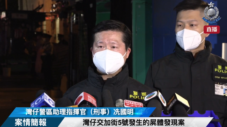 警方見記者,交代灣仔命案(視頻截圖) 灣仔警區助理指揮官冼國明表示,死者是一名鎖匠,死者昨日早上離開筲箕灣住所,大約9時45分抵達太原街店舖現場,準備裝修事宜,之後就未有人再見到過死者。到下午4時20分,朋友到場發現他倒臥在店舖內,面朝上,地上有大灘血漬。死者左頸右後方有利器剌傷的痕跡,傷及動脈,大量出血致死,法醫初步估計死亡時間大約在下午1時至3時,確實死因有待驗屍確定。 警方指,現場無發現明顯掙扎或打鬥跡象,現場門窗緊閉,死者財物無失。警方檢走裝修及開鎖工具作化驗,不排除這些工具當中有擊傷事主的物件。警方透露,死者曾向家人透露因轉換新舖及裝修問題有壓力,心情低落,不排除有自殺傾向,將再作深入調查,籲目擊者或市民如有消息提供,與警方人員聯絡。 【編輯:张琦】