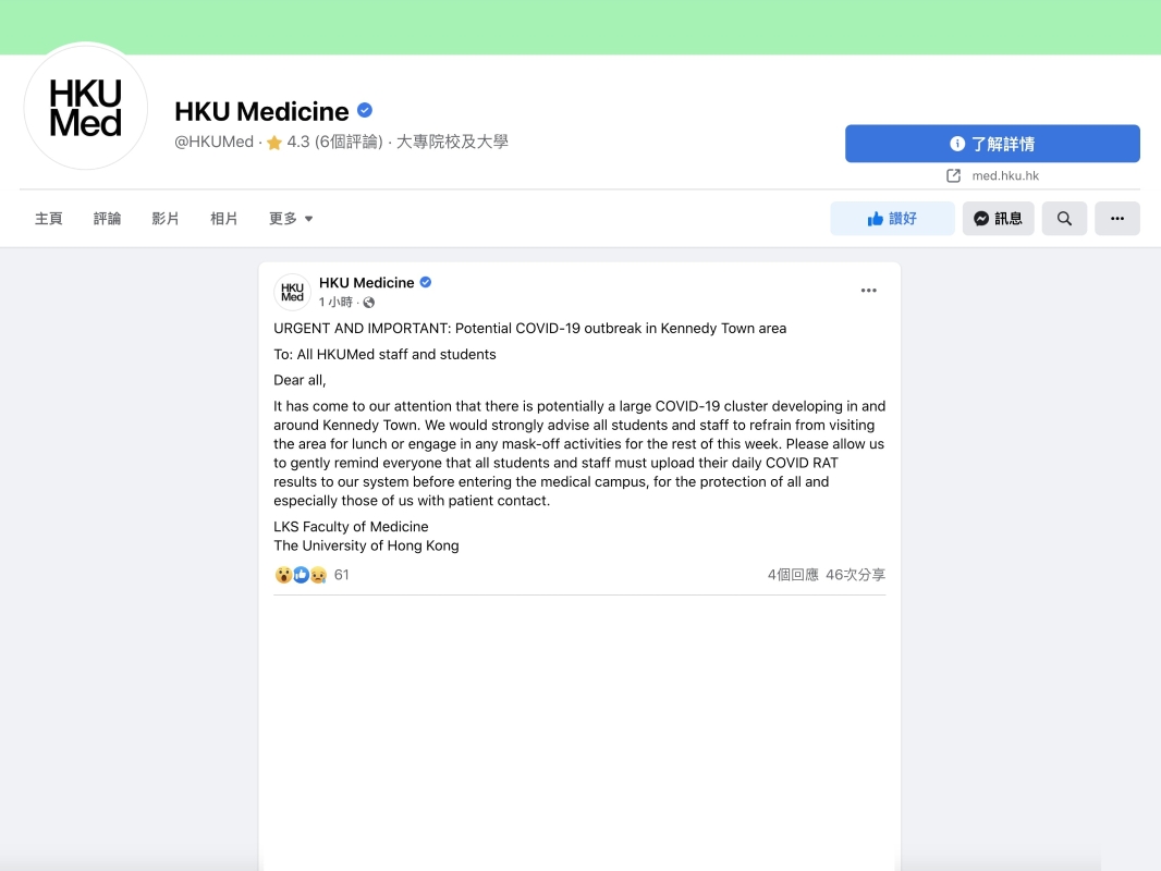 發放防疫訊息引起恐慌?港大醫學院回應了!分享到: