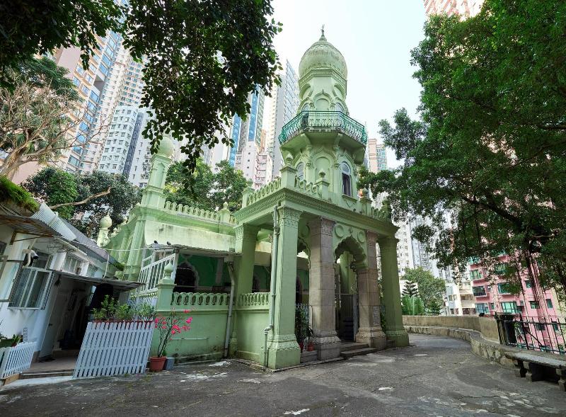 回教清真禮拜總堂以混凝土和磚建成,布局呈狹長的長方形,沿東西向的軸線而建,正門位於東面,朝拜牆位於西面,朝向伊斯蘭教先知穆罕默德的出生地——沙特阿拉伯城市麥加的克爾白。回教清真禮拜總堂具豐富的伊斯蘭清真寺建築特色,例如宣禮塔蓋有圓拱頂,配以尖飾;正門門廊和禮拜殿入口的多葉形尖拱門;彩色玻璃窗上方的尖拱;禮拜殿中央的八邊形圓拱頂;朝拜牆上的米哈拉布,以及牆上的庫法體書法圖案。回教清真禮拜總堂具有重大的歷史意義,見證本港穆斯林社群的發展,現時亦是香港穆斯林社群重要的禮拜和聚會場所。 香港大會堂位於愛丁堡廣場,為本港第二所大會堂,在1962年3月2日由當時的港督柏立基爵士正式揭幕。大會堂是本港首個向所有市民開放的多用途文娛中心和多項重要典禮的場地,亦是培育本地表演者的搖籃,見證本港的藝術及文化發展。