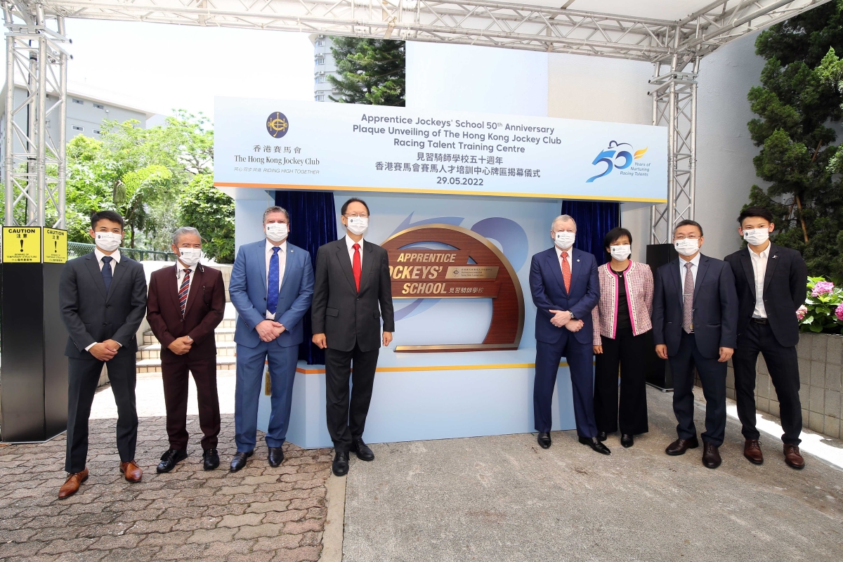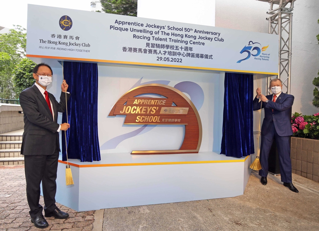 香港新聞網5月29日電 適逢香港賽馬會見習騎師學校成立五十週年,香港賽馬會29日舉行賽馬人才培訓中心見習騎師學校牌匾揭幕儀式。