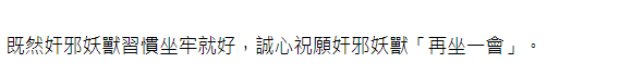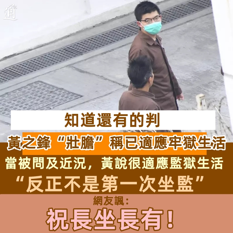 近一年後,未料黃之鋒又突然改口,聲稱適應監獄生活,惹得不少網友紛紛喊話:“既然習慣坐牢,祝長坐長有!”