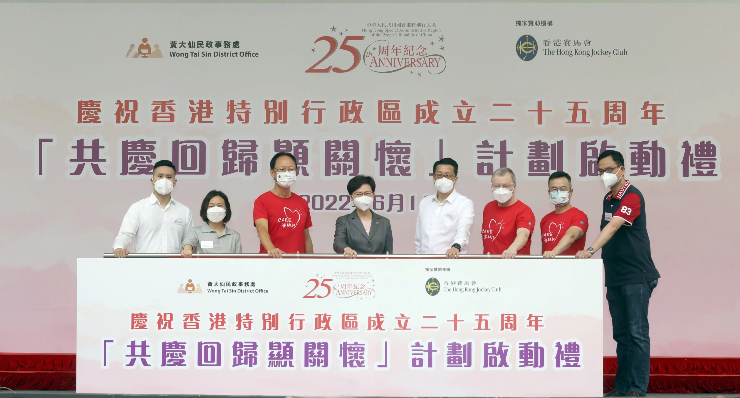 馬會主席陳南祿說,馬會過去25年一直秉持宗旨支援社區,致力建設更美好社會。本次的活動正好反映了關懷、關連,以及分享關愛的重要,特別是對社會上最需要幫助的人士。馬會與市民一樣“眾心至善”,多年來百分百竭力為香港,此心不變。 “共慶回歸顯關懷”計劃由民政事務總署統籌,並透過十八區的非政府組織推行。計劃包括探訪有需要人士,以及支援弱勢社群參與全港及地區慶祝活動。參與活動的非政府組織的義工將走訪約30萬個住戶,為他們贈送禮物包。