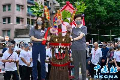 6月11日,香港特區行政長官林鄭月娥出席大坑火龍文化館開幕典禮。圖為林鄭月娥(右)和大坑火龍文化館常務副理事長羅詠詩(左)主持簪花掛紅儀式。 香港中通社圖片 大坑舞火龍的習俗已有約140年歷史,相傳大坑曾出現瘟疫,居民中秋前繞村舞動火龍後,瘟疫停止,這項習俗被列入第三批國家級非物質文化遺產名錄。每年中秋節,火龍在大街小巷中舞動翻騰,已成為不少香港市民和遊客慕名而來的節慶活動。 據介紹,大坑火龍文化館所在的書館街12號原址為晚清時期創立的“孔聖義學”,校舍曾遭到嚴重破壞,1949年原址重建。多年來,建築物一直用作教育用途。2013年12月,香港發展局推出第四期“活化計劃”,書館街12號是其中一個項目。 當日,香港特區行政長官林鄭月娥出席活動時表示,書館街12號現時通過“活化歷史建築伙伴計劃”,活化為大坑火龍文化館,以嶄新用途繼續服務社會,讓市民有機會欣賞和使用這座歷史建築之餘,亦認識大坑舞火龍及傳統客家文化和歷史。 大坑火龍文化館設有展覽廳,介紹大坑火龍的歷史、起源等,並設有以大坑火龍為主題的中西餐館,亦提供教育和體驗工作坊,舉辦一系列文化課程。 大坑火龍文化館理事會理事長林筱魯表示,大坑火龍文化館是首個把歷史建築和非物質文化遺產結合起來的項目,希望火龍館超越自身限制,藉助科技等,繼續弘揚舞火龍文化。 由於新冠疫情原因,中秋舞火龍活動已經停辦約兩年,在當日的開幕禮上,嘉賓們為火龍點睛及簪花掛紅,之後在敲鑼打鼓中,火龍圍著大坑火龍文化館遊走,吸引不少市民駐足。 林筱魯也希望,疫情平穩後,可以照常舉辦舞火龍活動,通過舞火龍活動,驅走瘟疫,讓市民生活恢復正常。(完) 【編輯:凌玉辉】