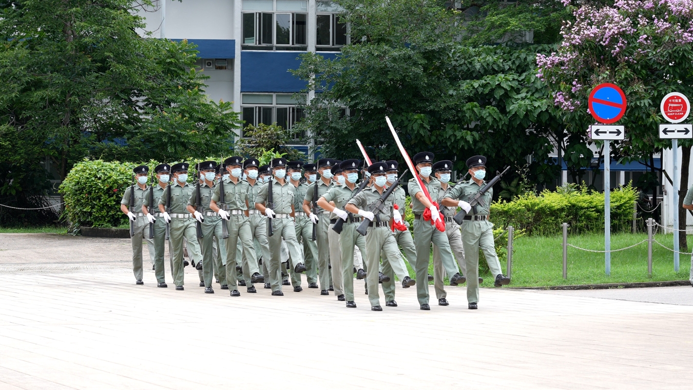 (香港回歸25年)25歲香港警察:中式步操彰顯民族情感香港中通社6月13日電(記者 李明珠 )“向右看!”渾厚有力的普通話口令聲起,工作日的清晨,香港警察學院的操場上已經聚集不少學員。身著綠色制服的學員將手中長槍向前擊出,槍柄抵在側腰間,腳背繃直向前踢起,隨即腳掌觸地,皮鞋擊地聲鏗鏘有力。 香港回歸25年,香港警隊將在7月1日回歸紀念日,全面採用中式步操,近日香港中通社記者來到位於黃竹坑的警察學院,看到學員仍在認真練習,為各典禮儀式做最充分準備。 1997年出生的陳學員,從小立志做警察。剛訓練完,陳學員衣服微濕,眼神堅毅,年紀輕輕,他對中式步操有著國家的自豪感。 “我今年25歲,在2021年的12月加入警隊,可以做一個警察是我從小的志願,因為警察的工作十分有使命感,而且可以維護法紀,警隊全面轉用中式步操可以更加體會到我們的國家觀念,還有彰顯民族情感。” 步操是紀律部隊訓練紀律和團隊精神的重要一環,在香港回歸初期,社會並無聲音要求紀律部隊改為中式步操,紀律部隊也多沿用港式步操的方式;香港回歸25年,直至去年初,各大紀律部隊才逐步引入中式步操。