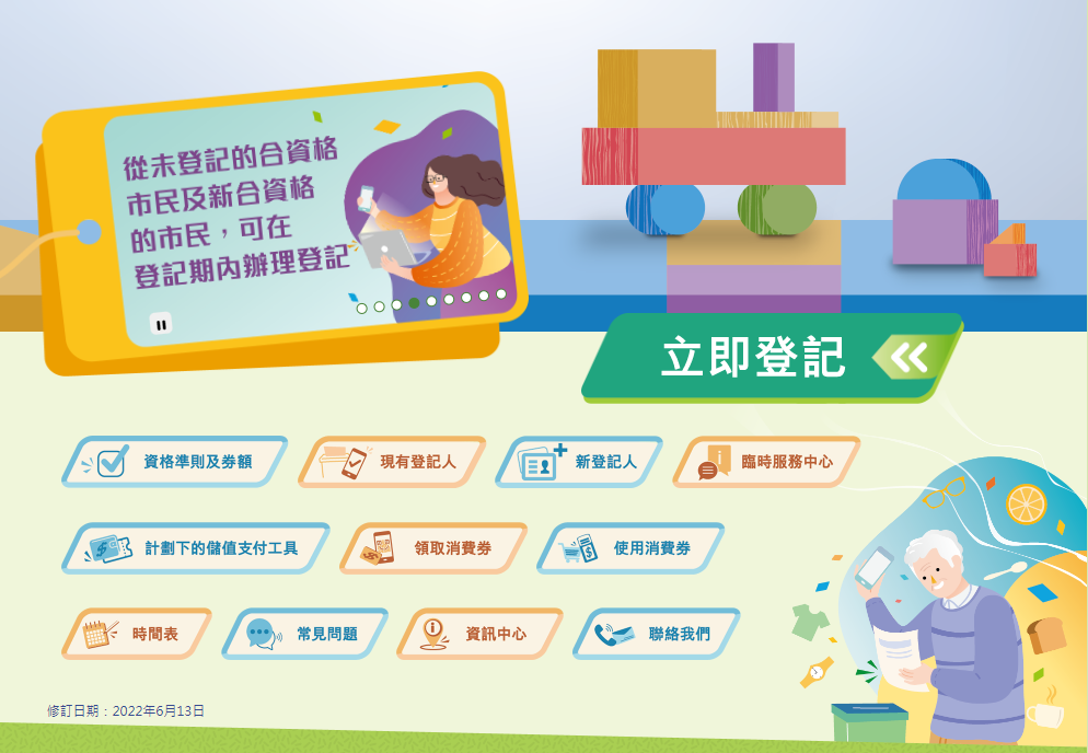 登記平台: 在儲值支付營辦商方面,除了早前的Alipay HK、Wechat Pay HK、八達通及Tap&Go拍住賞4個工具之外,還將新增匯豐的PayMe和中銀的BOC Pay。 如果市民不想轉用其他平台,有關部門會根據之前的資料審核,之後發放消費券;想轉用其他平台的市民,以及新符合資格的市民,可以在6月23日起在網上登記,為期一個月。 6月23日起點這裡登記:https://www.consumptionvoucher.gov.hk/tc/ 如何發放? 新登記領取1萬港元消費券人士,若選擇以八達通領取,會分四期發放。頭三期分別於8月7日、10月1日及12月1日發放,每期發放3000港元。最後一期的1000港元,則在合資格消費累積達9000港元後的下一個月16日發放。若以八達通除外的5個儲值支付工具登記,消費券將會分3期發放,首兩期發放3000港元,今年12月1日發放最後一期4000港元消費券。 至於之前已領取,在第二段領取5000港元的市民,若以八達通領取,將分三期發放。若以八達通除外的5個儲值支付工具登記,就會分兩期發放。