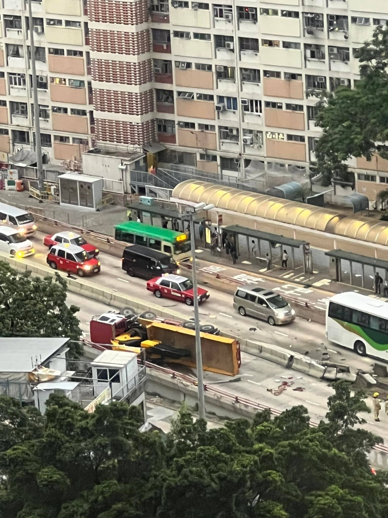 龍翔道近彩虹邨發生翻車意外 往觀塘方向全線封閉分享到:
