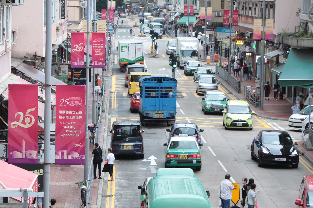 香港元朗區設置“慶祝香港特區成立25周年”花牌和宣傳條幅