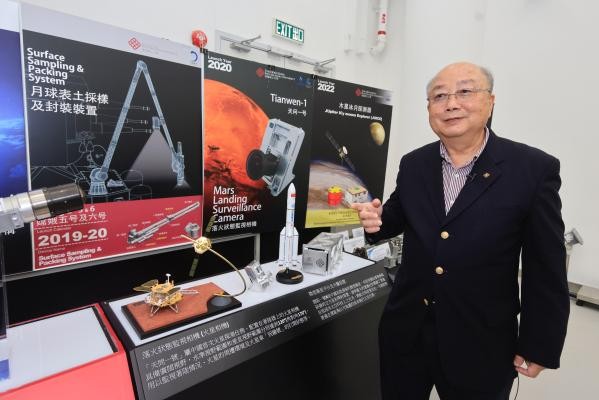 香港中通社圖片 許其皓 摄 專訪這天,理工大學深空探測研究中心所在大樓,電鑽聲此起彼伏。容教授一邊介紹擴建規劃,一邊讓同事與施工團隊溝通,幾個來回,十分鐘過去,容教授靜靜等著,確保沒有傳出噪音,露出滿意笑容說“可以開始了”。 萬無一失,已經融入這位國家航天事業“香港功臣”的骨子裡。 自2010年起,香港理工大學為國家探索太空作出貢獻。2013年開始應用於“嫦娥三號”的相機指向系統、從40萬公里外帶回月壤的月表採樣及封裝裝置、2020年搭於“天問一號”的火星相機……實驗室內的一面介紹海報,是容啟亮參與國家航天發展的功績牆。 哪一次最深刻?最難忘?容啟亮的回答是“每一次”。