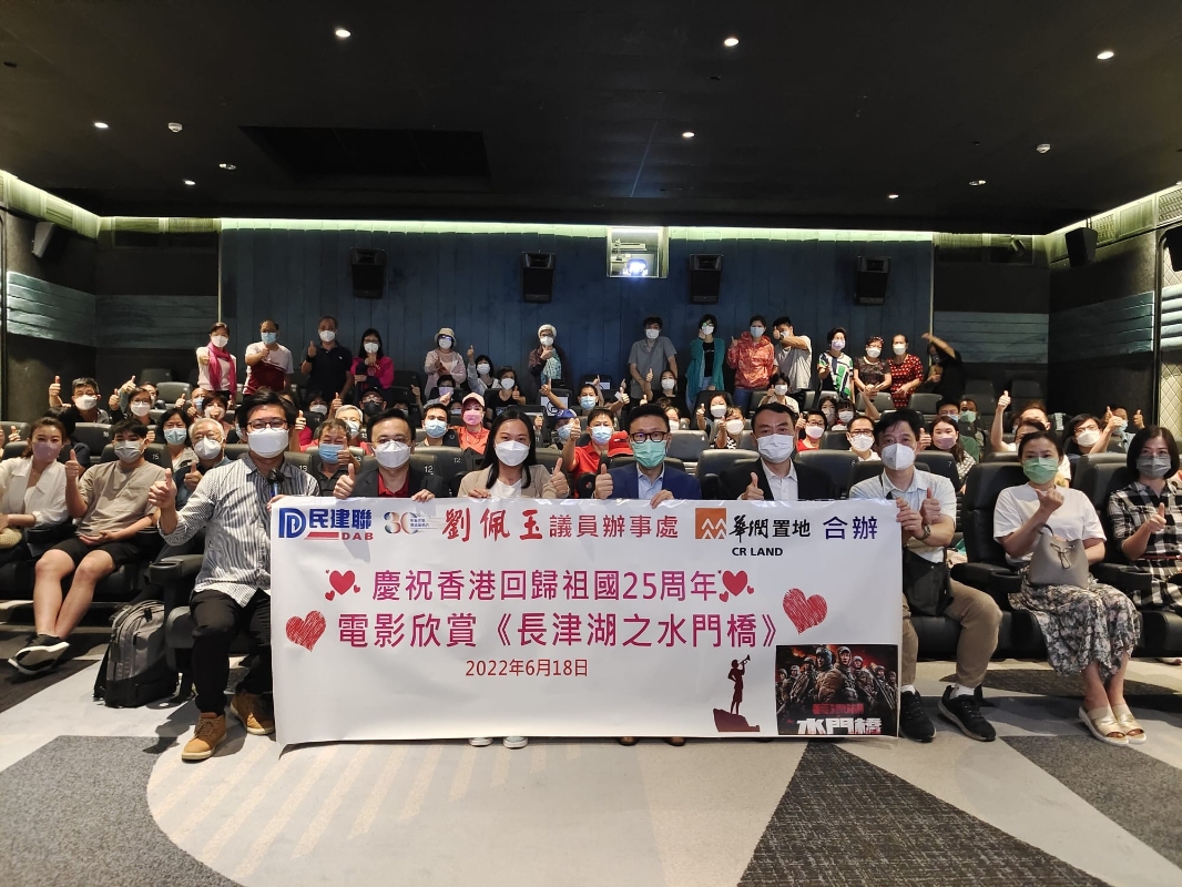 香港新聞網6月18日電 今年是香港回歸祖國25周年,也是香港落實愛國者治港之下,第六屆特區新領導班子即將上任、同開新篇之際。在港中資機構──華潤置地與深水埗區議員劉佩玉18日合辦《長津湖之水門橋》電影欣賞會,邀請了60多位深水埗基層市民共聚一堂,共同欣賞愛國電影《長津湖之水門橋》,共同慶祝香港回歸25周年。