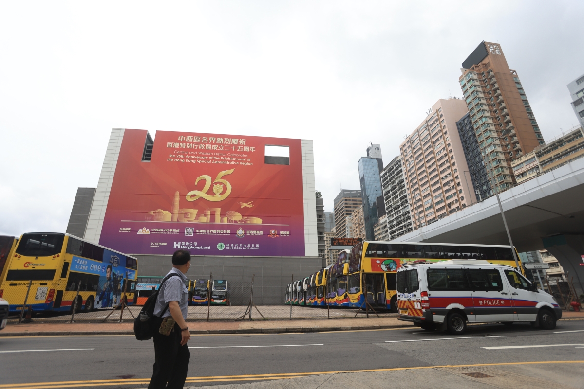 中區警署外墻巨幅宣傳畫慶回歸25周年。