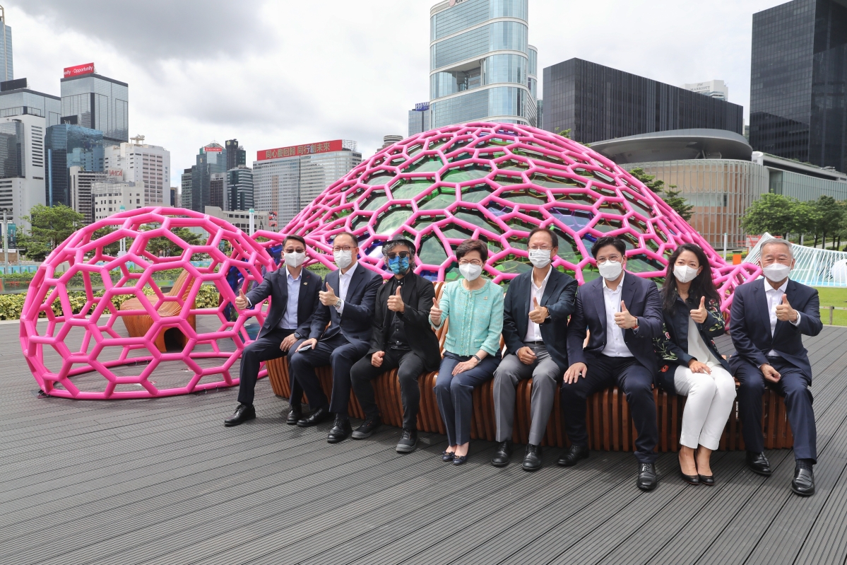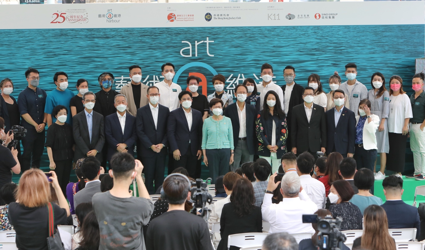 香港新聞網6月22日電 (記者 謝光磊 )22日,為慶祝香港特別行政區成立25周年,“藝術@維港”藝術展覽計劃於中西區海濱長廊文化廣場舉行開幕典禮。“藝術@維港”是康文署與私營機構合辦藝術展覽,結合藝術和科技,在維港兩岸擺放大型戶外藝術裝置作品和大屏幕數碼影像。活動共有四個展覽項目,包括在中西區海濱長廊開幕的“藝術有理”和在九龍臨海商場或酒店設置的展覽。“藝術有理”展覽會在23日開放給公眾參觀,展期至今年12月中結束。