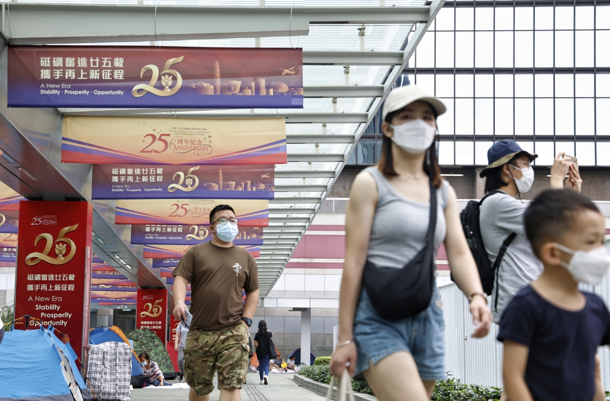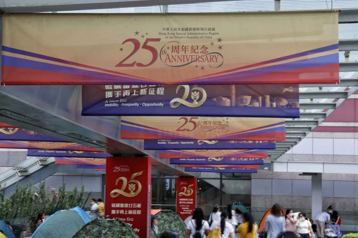香港新聞網6月23日電 (記者 曹文毓)香港回歸25周年倒計時,紅火的氣氛從街頭的每個岔路口交匯而來,綻放出港人的歡呼。