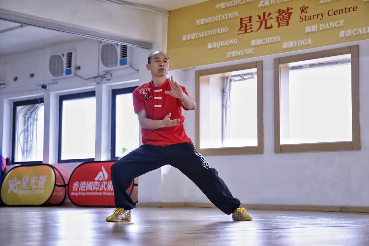 冷先鋒現場演練太極拳。 曾獲得全國太極拳冠軍、現為香港國際武術總會會長的冷先鋒,致力於在香港推廣以太極為主的中國傳統武術文化。