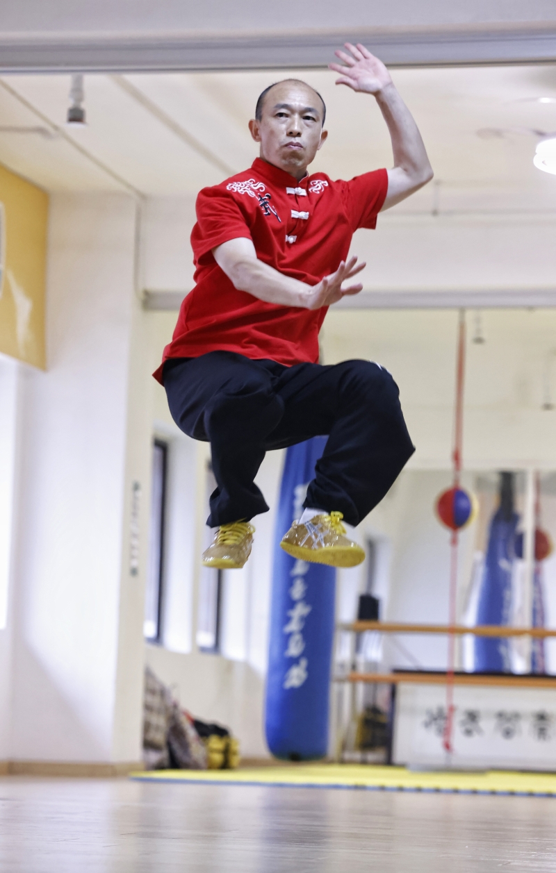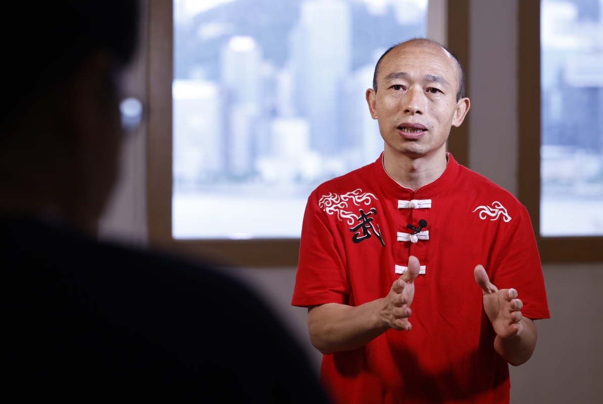 冷先鋒演練太極拳。 多年來,冷先鋒先後去過東南亞、日本、美國和英國,他表示,好多國家都想留他在那裡發展,“但我選擇香港,因為我覺得始終是沒有離開中國。”冷先鋒堅定的說。