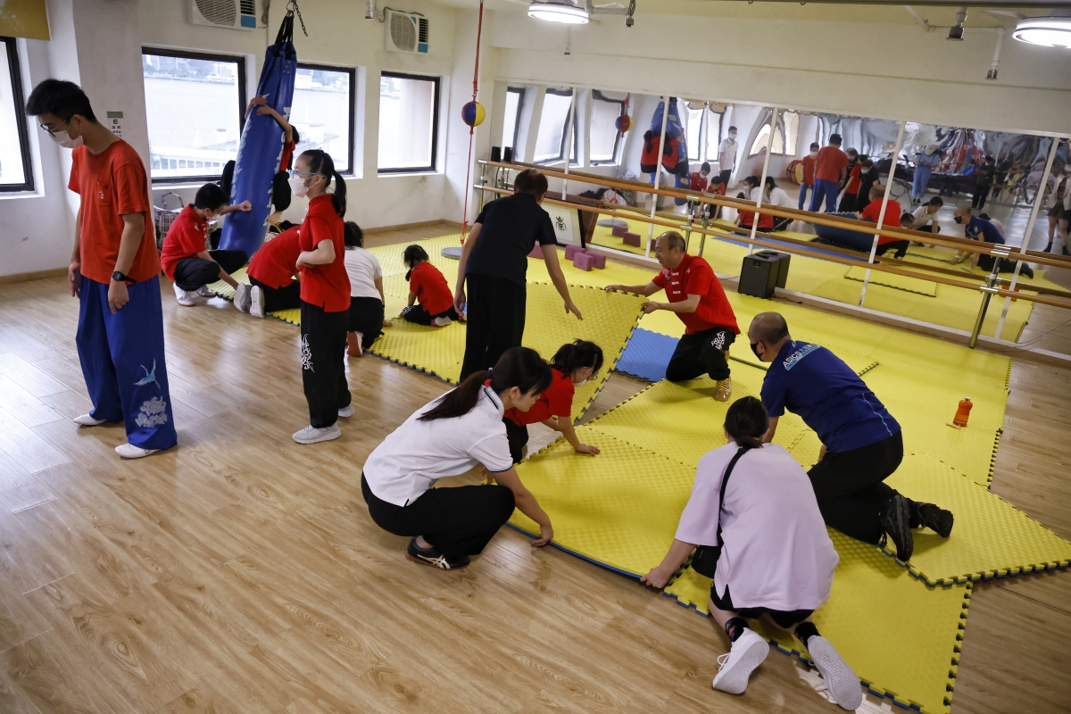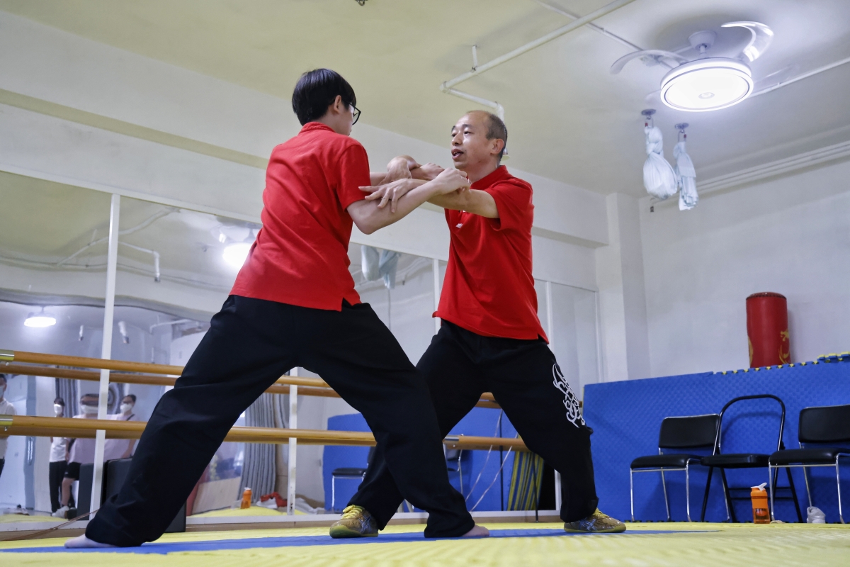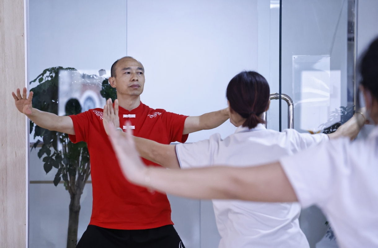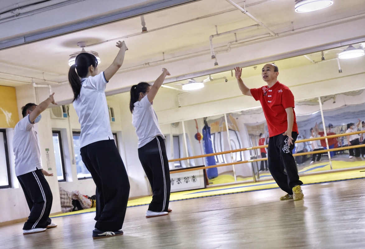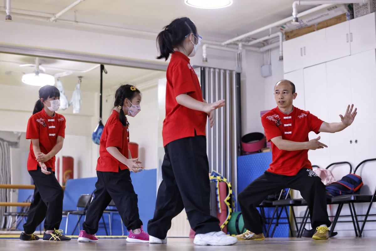 冷先鋒在授課中。 冷先鋒曾在河南學習太極,在深圳開班教學,如今在香港落地生根,他的徒弟也有幾百位。在星光薈裡,即使他的學生從小學到中老年,教學起來依然得心應手,有條不紊。