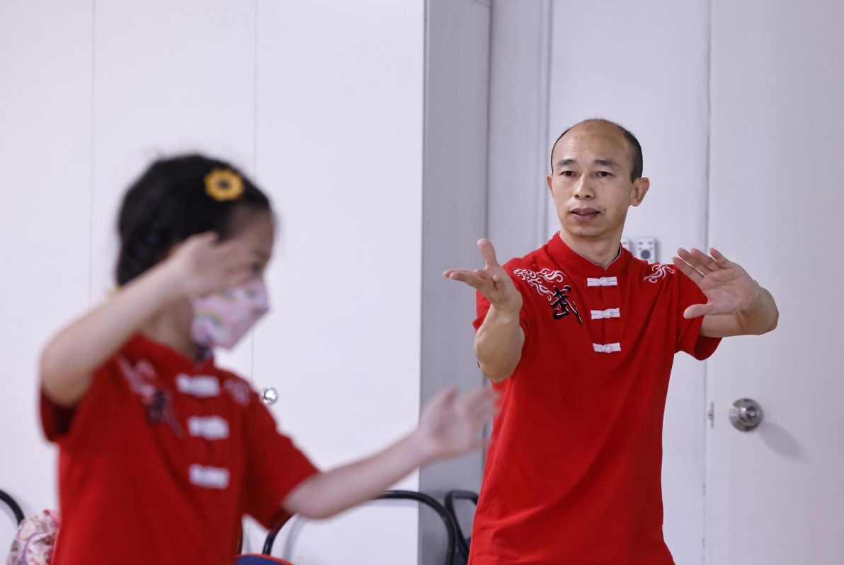 冷先鋒教小朋友太極拳。