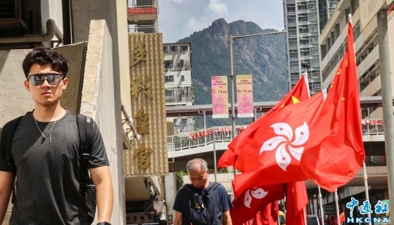 香港中通社6月27日電(記者 徐文峰)香港回歸祖國25週年,最耀眼的顏色當屬中國紅。 近日,香港滿目皆是那一抹讓人振奮的中國紅,國旗和區旗在街頭迎風飄揚,回歸氣氛濃厚。