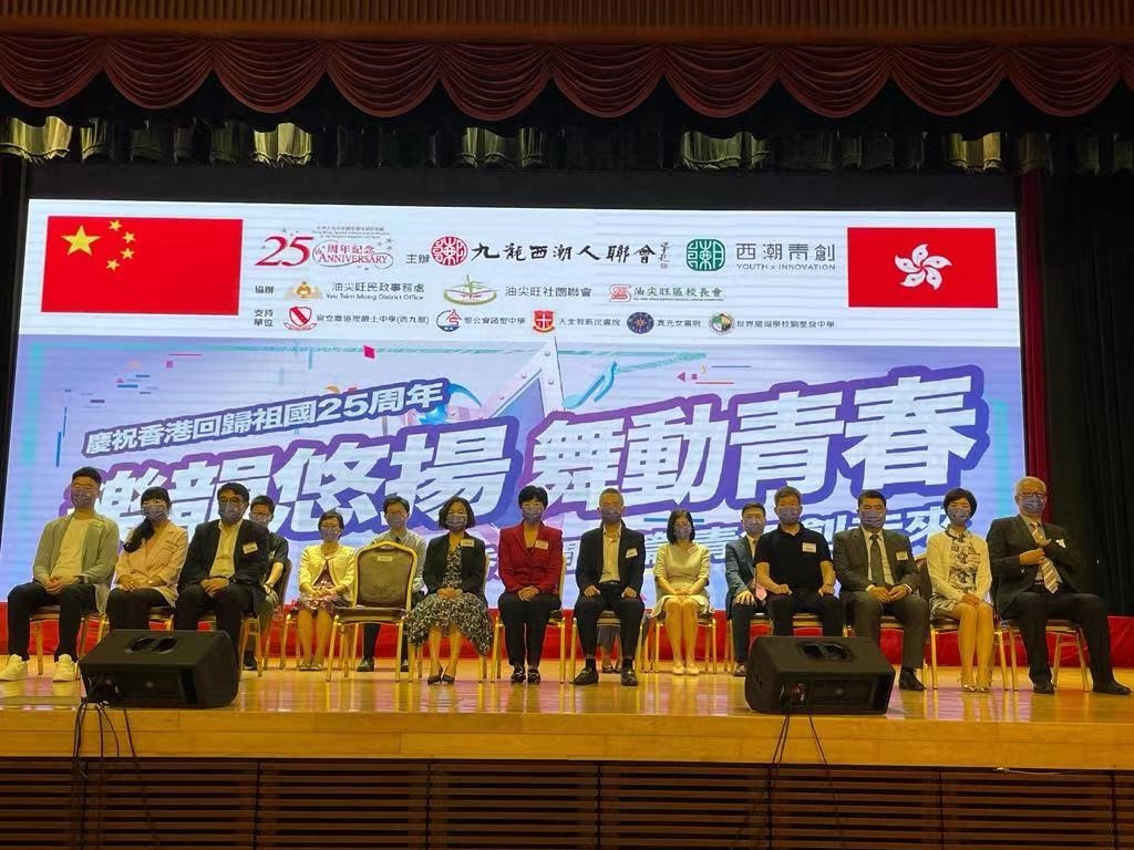 九龍西潮人聯會常務副會長張文慧女士致辭時表示,現在香港回歸祖國25周年來臨之際,九龍西潮人聯會同西潮青創很榮幸與油尖旺區的學校和不同的青年代表及團體共聚一堂,舉辦今次“樂韻悠揚 舞動青春”活動,熱烈慶祝香港回歸祖國25周年。 西潮青創主席連洲杰認為,香港處在回歸25周年和由治及興的新起點,青年人是社區未來的棟樑和主人翁。期望年輕一代要用平等、尊重、愛心來看待這個世界,用欣賞、包容、互鑒的態度來看待世界上的不同文明,促進各階層各個背景的人的相互瞭解和理解,用青春的活力創造更美好的明天。 油尖旺區校長會代表梁冠芬校長致辭,稱讚九龍西潮人聯會一直關心西九龍,尤其是油尖旺區的學生成長工作,為同學提供多元化的學習經歷,是本區學界的一個好夥伴。是次活動,他們更藉著慶祝香港回歸祖國廿五周年的盛事,為同學們創設了一個發揮音樂藝術潛能的平台,讓大家可以互相交流,彼此欣賞及學習,實在是一個難得的機會。