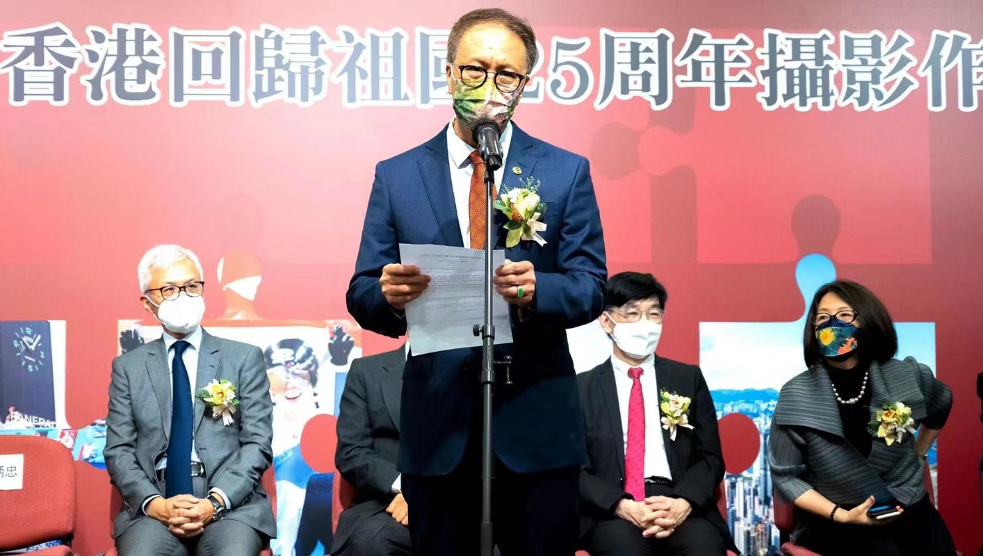 展覽開幕典禮上“香港文聯”會長馬逢國、香港故宮文化博物館館長吳志華、中國攝影家協會香港會員分會主席陳炳忠等出席致辭。(完) 【編輯:李明珠】