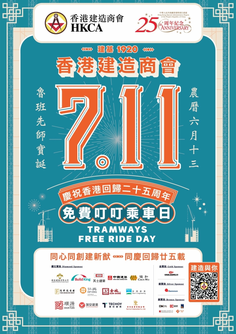 建造商會特別選定“魯班誕正日”農曆6月13日、即7月11日舉行“建造商會叮叮樂”電車免費乘車日啟動禮,市民可享受無限次免費乘搭電車。