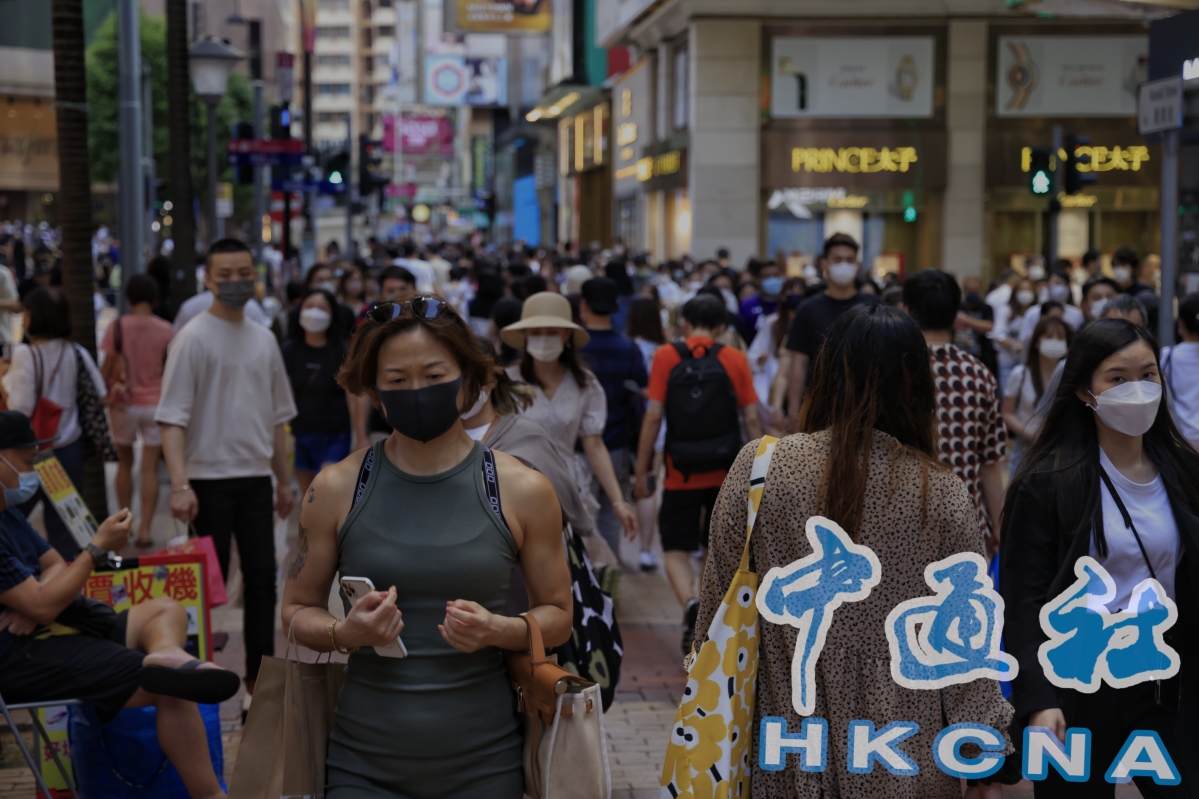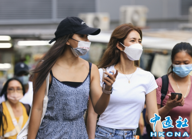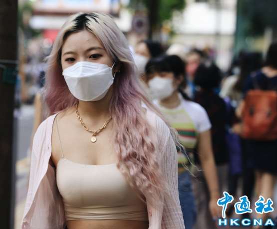 市民穿著清涼出行。 此外,香港疫情近日反復,加上天氣酷熱,給市民出行帶來憂慮。