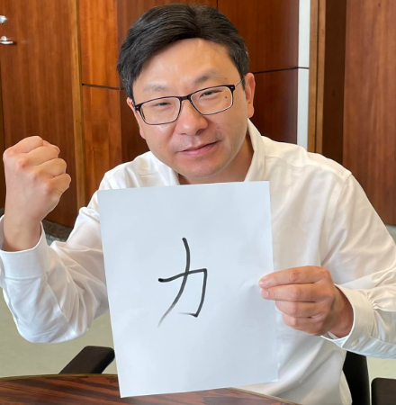 勞工及福利局局長孫玉菡寫下“力”字,比喻人生就像一場接力賽,中學文憑試只是其中一棒,就算這棒游得不好,只要後勁發力,最後仍有機會贏得比賽。