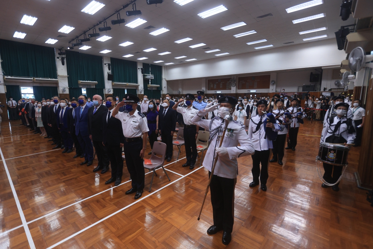 香港特區政府保安局局長鄧炳強、香港特區政府教育局局長蔡若蓮、香港中聯辦警聯部部長陳楓、香港中聯辦教科部副部長徐凱、香港警務處處長蕭澤頤等出席升旗儀式。
