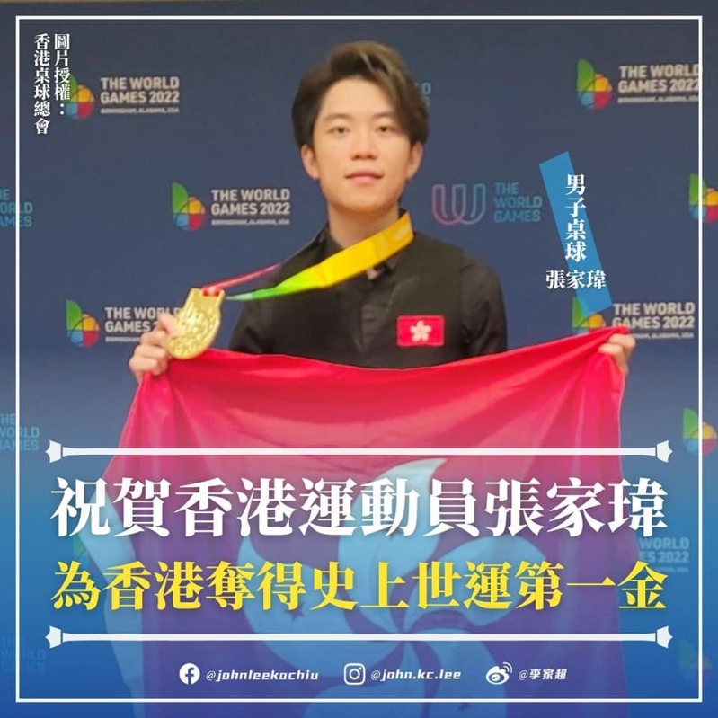 (圖源:李家超Facebook) 他表示,今屆世界運動會因東京奧運會延期而由去年順延至今年舉行,未免打亂運動員的訓練安排。但港隊健兒們憑着自強不息的精神,在世運會合共取得1金4銅,創下港隊歷來最佳成績。 李家超感謝每一位香港運動員的努力,亦特別恭賀張家瑋在男子英式桌球個人賽事中,為港隊取得世運會歷來首面金牌。希望各位青年運動員繼續傳承這份堅毅不屈的拚搏精神,以實力説話,不斷突破自我。 【編輯:刘春】