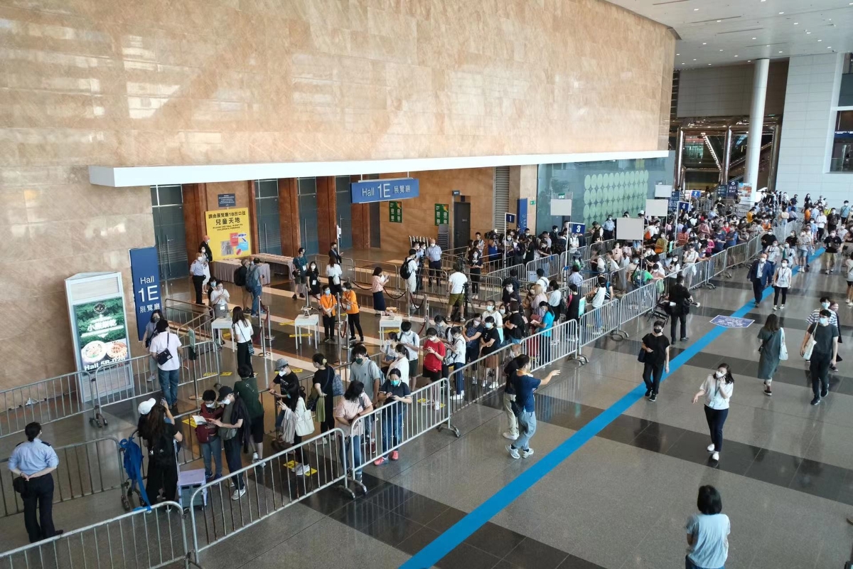 香港新聞網7月20日電 香港書展今日(20日)起至26日,一連7日在灣仔會展舉行,書展早上10時開放入場前,已有不少市民在會展外排隊輪候。有市民表示,今年書展會場附近開通了東鐵線過海段會展站,交通上較以往方便,因此今年提前到場排隊人數較以往多。