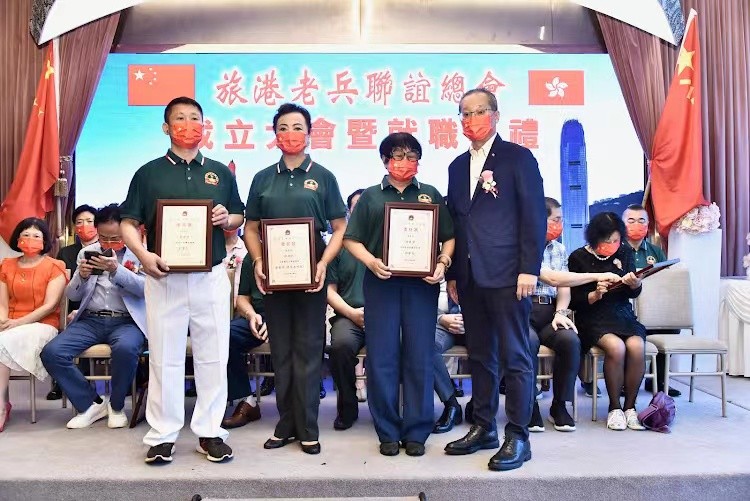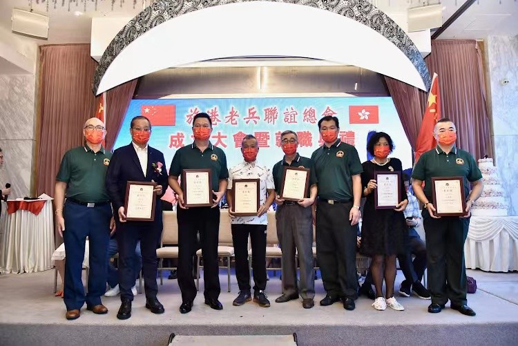 立法會議員鄧家彪(右)執行會長兼秘書長戴軍。 大會在嘹亮的國歌聲中開始,立法會議員鄧家彪致辭,他在講話中提到八一南昌起義打響第一槍到解放軍成立已95周年。中國人民解放軍是中國共產黨締造的人民軍隊,英雄的人民軍隊為民族獨立、人民解放、國家富強建立了不朽功勳。特別是老兵,你們為維護國家主權、安全、世界和平與安寧付出了英勇的貢獻。在此八一建軍節到來之際向老兵致以崇高敬意。香港回歸25年來,社會也經歷了很多,隨著國安法成功在香港落實,香港社會又走向正軌,維護一國兩制,能讓兩製成功實踐行穩致遠。與愛國愛港的團體分不開,繼續發揮革命軍人本色,在不同崗位發光發熱。 前特區政府保安局保安主任、深圳市平凡英雄基金會名譽主席李喬奇、民建聯社區主任陳崇文分別發言中提到新一屆特區政府開啟新征程,老兵也是祖國最可敬的人,讓我們這些可敬人在一國兩制下的香港,在不同的工作崗位服務社會。 創會會長施建國提到旅港老兵聯誼總會成員主要都是已退役老兵,都來自不同地方,有的參加過抗美援朝、抗美援越、對越自衛反擊戰的老戰士,為保家衛國,祖國的安寧、保護人民生命財產流血流汗做出了巨大貢獻。現在雖然已退役,但是還保持本色,在社會不同領域實現自我價值。不忘初心, 牢記使命,建成一個堅定的愛港團體。 大會上委任了總會架構人員並邀請主禮嘉賓頒發了委任狀,新任會長吳瑞康並發言提出了總會新的方向。慶祝活動上還安排了豐富多彩的文藝節目。