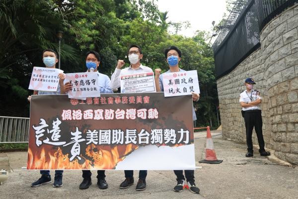 香港中通社8月3日電 美國國會眾議長佩洛西一行罔顧中方嚴正表態與警告,於2日晚抵台。香港多個政團3日於美國駐港總領事館門前請願,譴責佩洛西竄訪台灣,指該行為嚴重侵犯中國主權和領土完整。