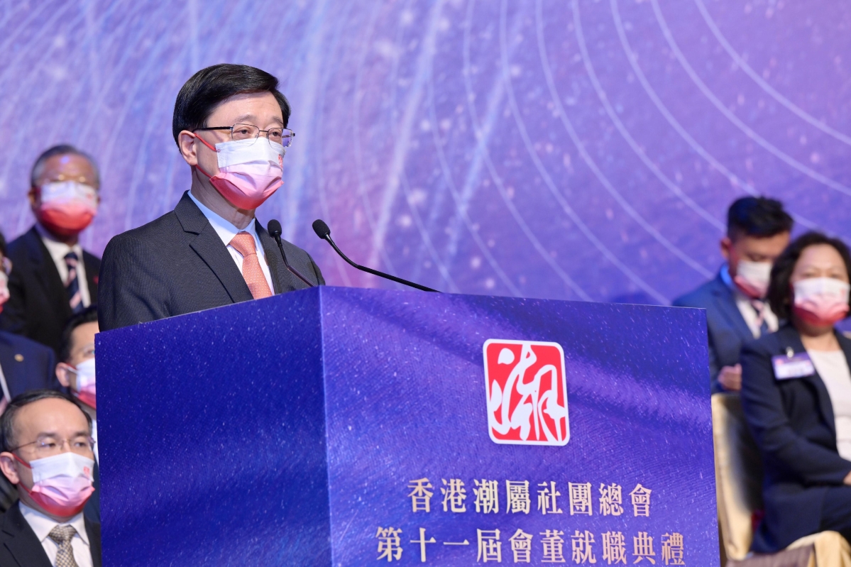 李家超表示,自成立以來,總會凝聚潮籍人士,貢獻國家、建設香港、服務社會。在疫情之下,總會向全港百多間學校送贈物資,又動員過千位義工參與政府防疫服務包的包裝和派發工作,充分體現潮籍社群團結同心、守望相助的精神。 總會會董會主席陳振彬表示,第十一屆會董會吸納香港各界潮籍精英,凝聚各階層力量。未來總會將以嶄新面貌和更大力度推動香港經濟繁榮,大力支持李家超帶領新一屆特區政府為建設更加美好香港所作的努力,同開新篇。 總會監事會主席林建岳表示,總會作為120多萬潮籍鄉親的“領頭羊”,長期以來積極凝聚在港潮人,全力支持配合特區政府依法施政,為維護社會和諧穩定竭盡所能。