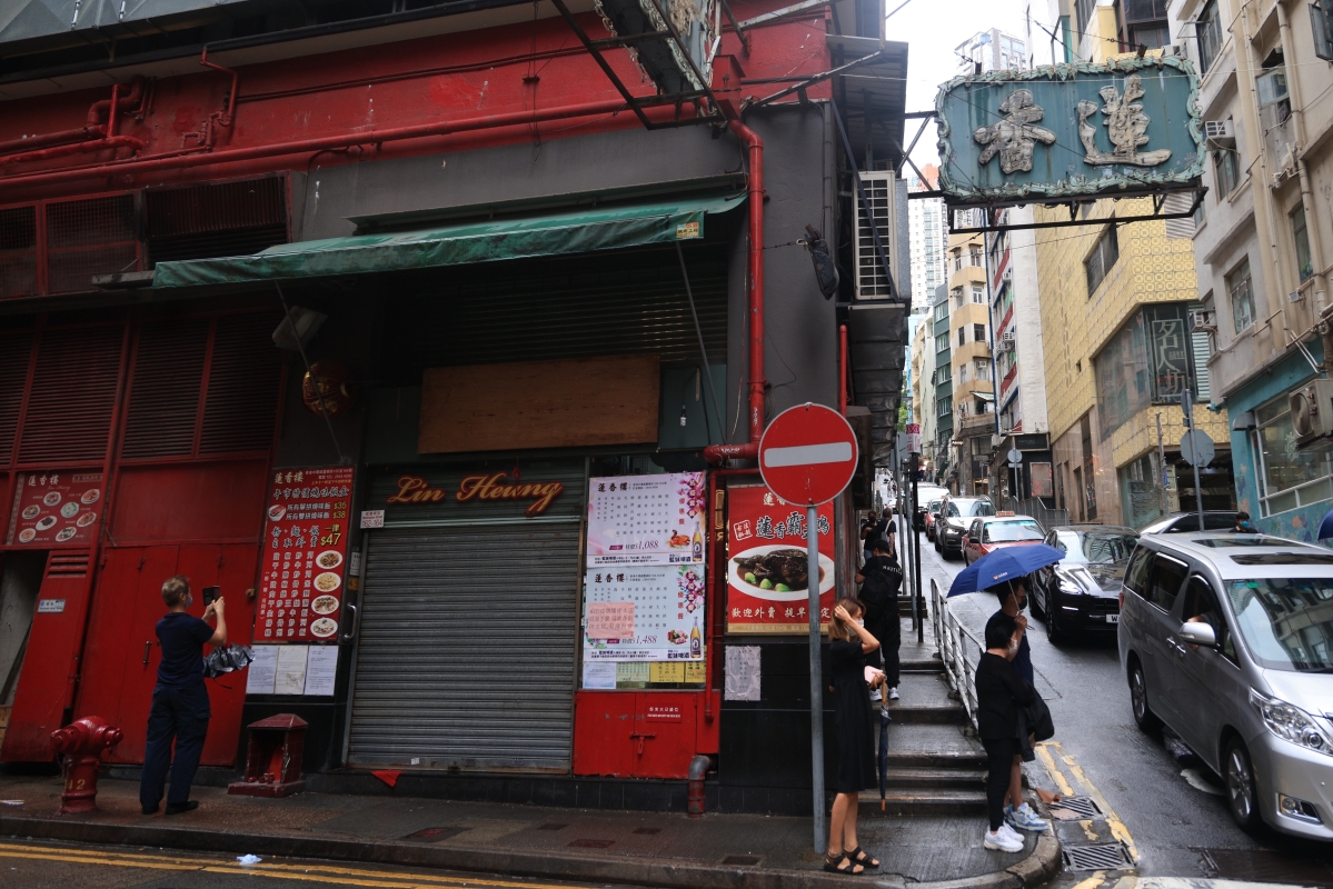 有市民經過結業的蓮香樓拿起手機拍照留念