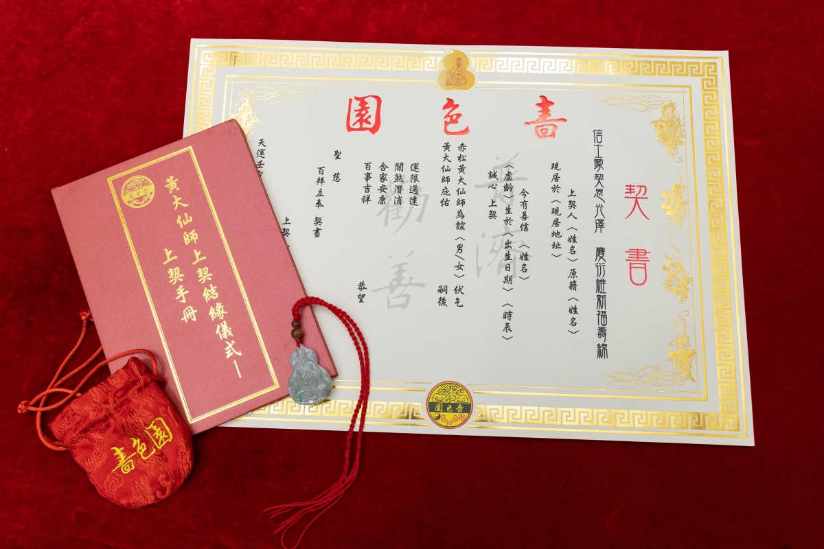 香港新聞網8月14日電 香港“黃大仙信俗”自 2014 年列入國家級非 物質文化遺產名錄,作為申辦人及代表機構,嗇色園黃大仙祠一 直肩負起保育責任,積極弘揚黃大仙信俗,讓普羅大眾認識黃大 仙信仰與精神。而黃大仙信俗的內容包括信仰、科儀、習俗等, 當中與仙師上契結緣正屬習俗之一。嗇色園黃大仙祠今年第六度 舉辦“黃大仙師上契結緣儀式”,冀望一眾契子女健康平安、豐衣 足食,同時弘揚黃大仙信仰的教義和文化。