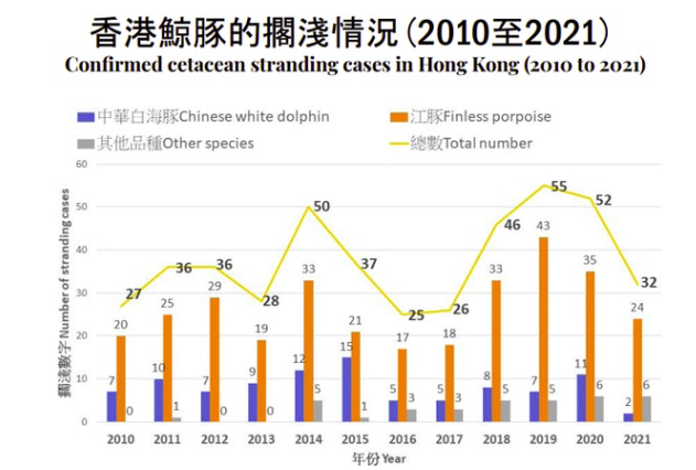 此次發現為本年度第18及19宗鯨豚擱淺個案,有關人員已將兩隻江豚帶回海洋公園作詳細解剖及化驗。 去年,香港共錄得32隻鯨豚擱淺,當中七成半為江豚,其餘為中華白海豚及其他品種的鯨豚,包括樽鼻海豚、侏抹香鯨及熱帶斑海豚,數字較過去三年回落。 香港保育組織為其中的31隻鯨豚進行影像解剖,判斷有10隻死因與人為因素有關,其中9隻涉漁業活動,1隻與船隻撞擊有關。 “香港江豚擱淺是個警示。”澳大利亞詹姆斯庫克大學鯨類科學家普圖・利扎・穆斯蒂卡曾說,“這應該被視為一個信號,表明我們管理海洋的方式出了問題。”(完) 【編輯:張明臻】