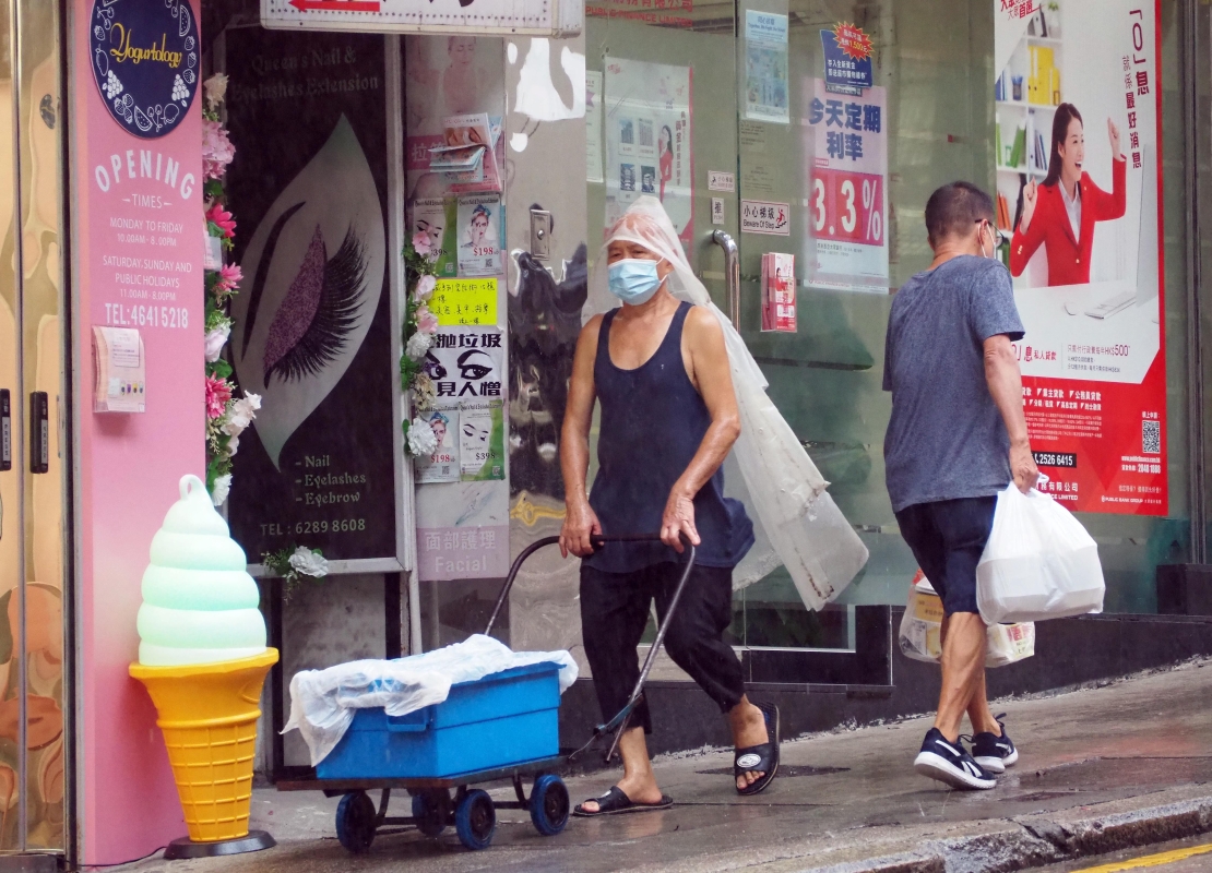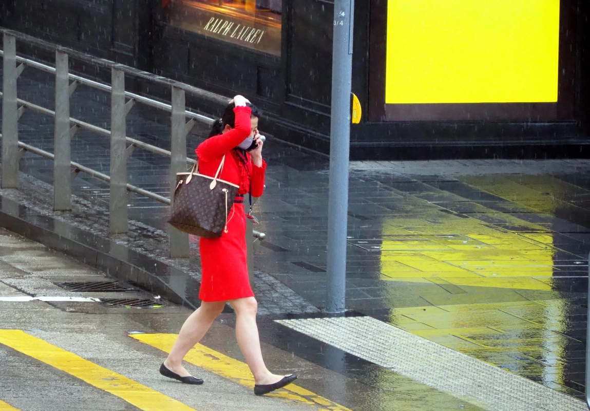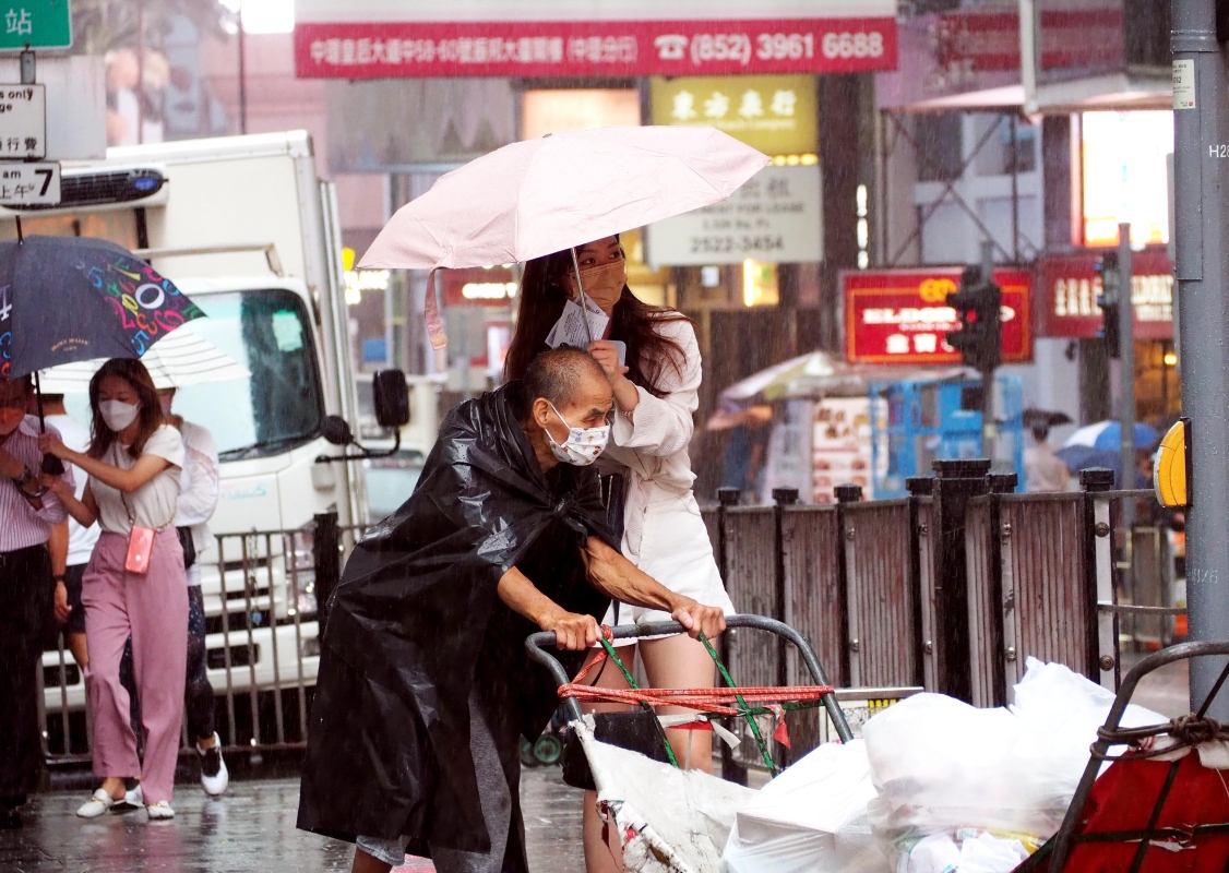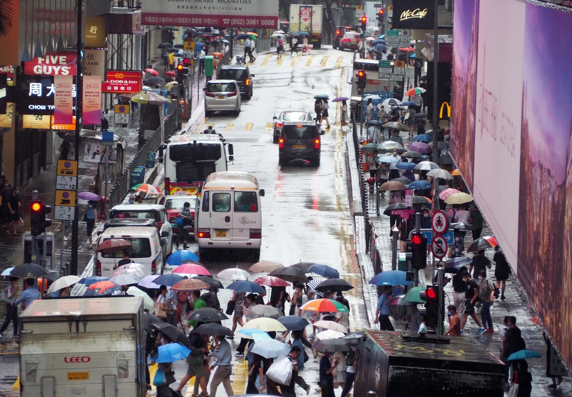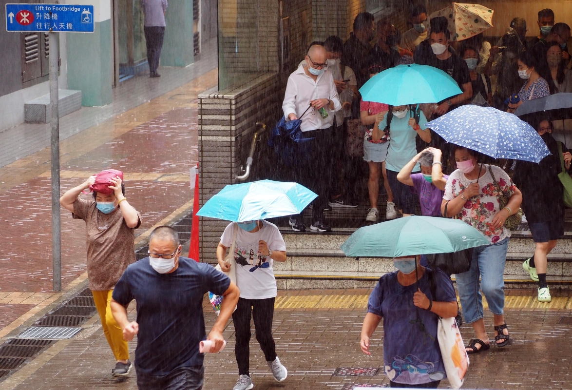 熱帶風暴“馬鞍”遠去,大批市民冒雨趕路。