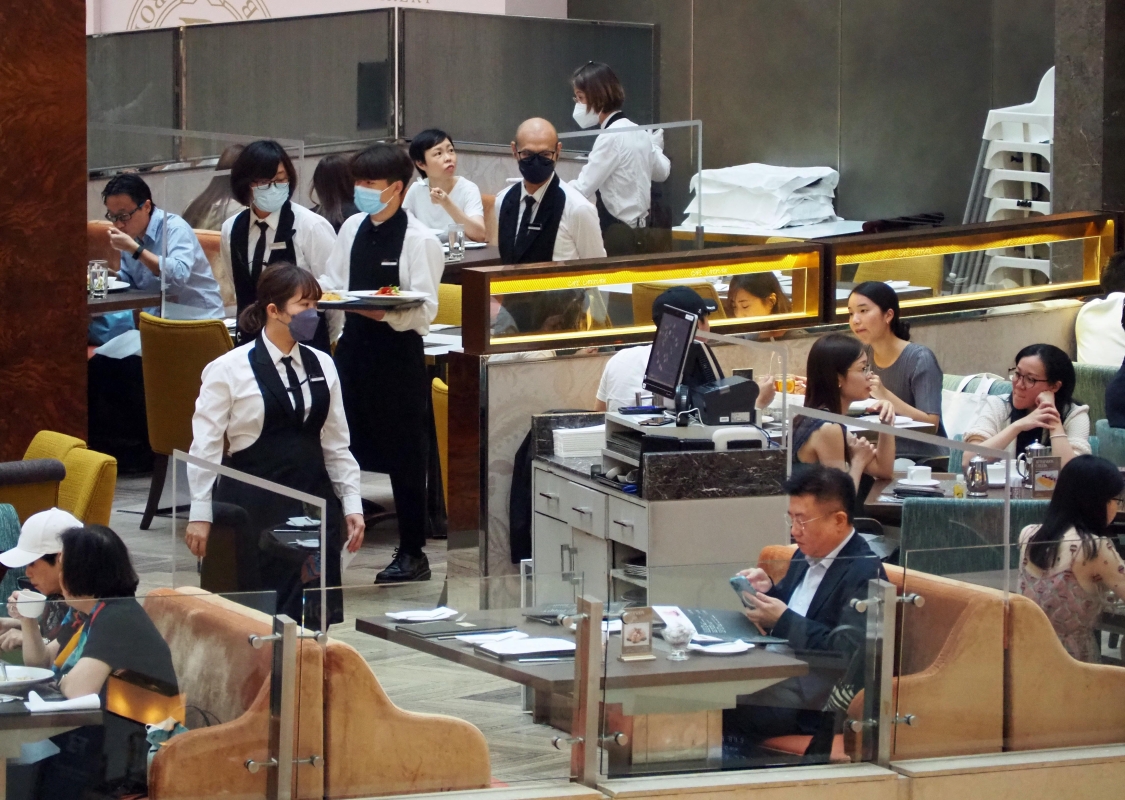 熱帶風暴“馬鞍”遠離,香港市民出外用餐。