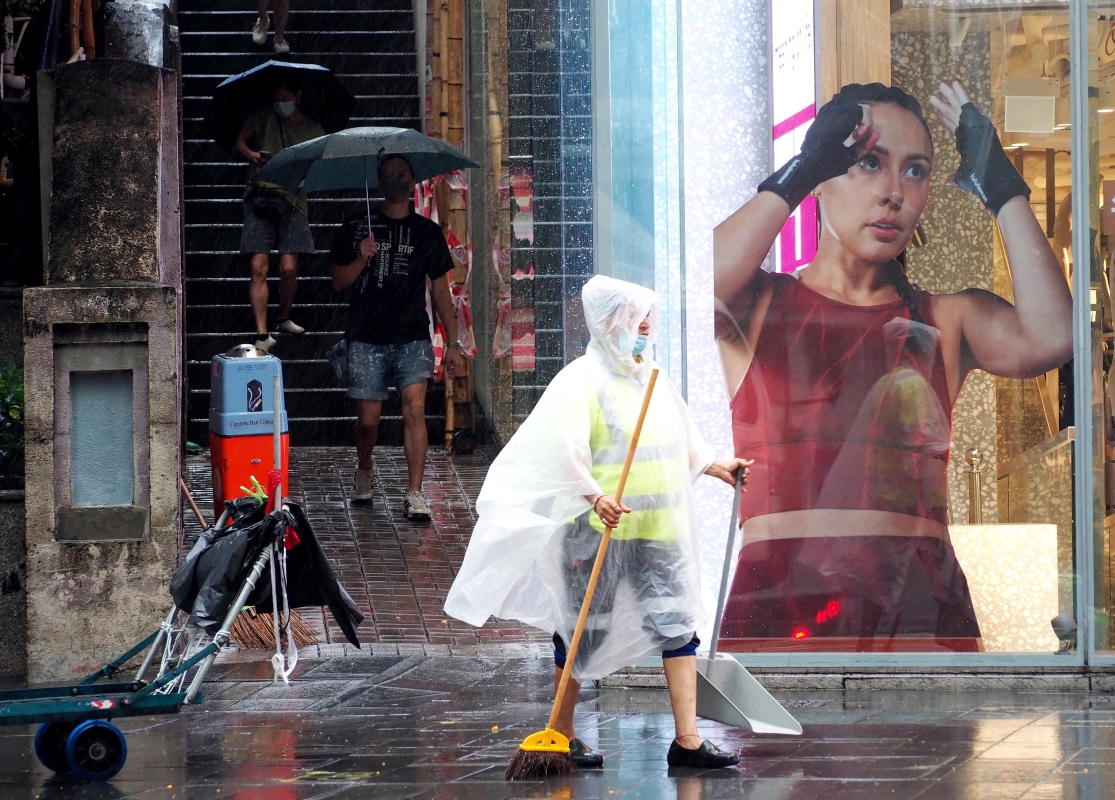 熱帶風暴“馬鞍”遠離,清洁工清理街道。 【編輯:洪少葵】