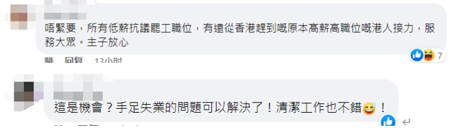 網友評論 眼見“黃絲”移英後找工作不順利,部分香港白領在英國只能做藍領工作,甚至去倉庫當倉務員,有網友遂嘲諷英國人參與罷工或對移英“黃絲”來講是個“機會”——“‘手足’失業的問題可以解決了!清潔工作也不錯。”
